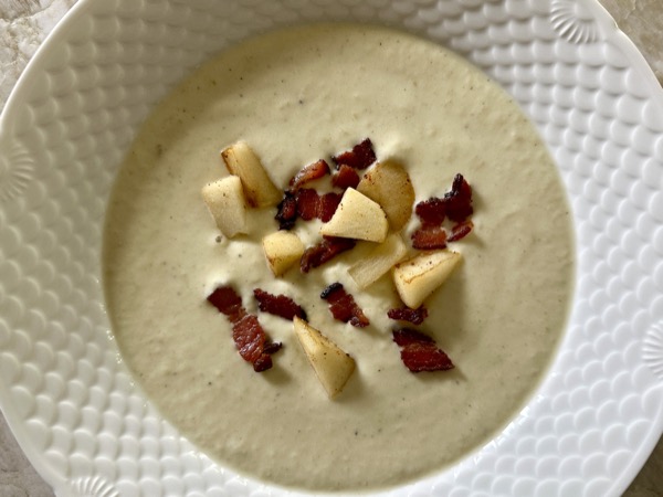 The first snow just blanketed the peaks of our Wasatch Mountains. As the temperatures dipped and the aspens turned the most brilliant gold, I knew it was time for soups and sweaters. Last year I fell in love with celery root soup. I spent much of that midwinter tweaking and perfecting the recipe. What's key is letting the soup gently simmer for an